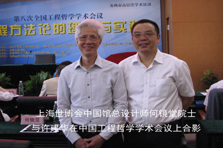 上海世博會中國館總設(shè)計師何鏡堂院士與許建華在中國工程哲學(xué)學(xué)術(shù)會議上合影